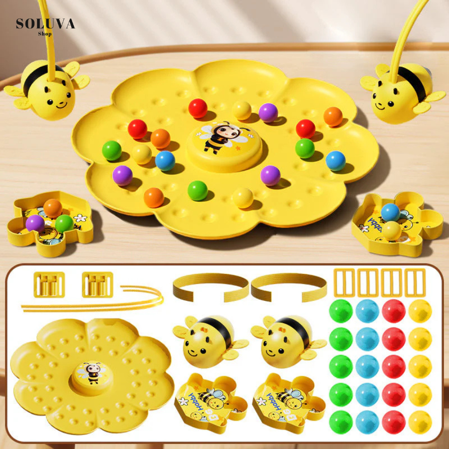 Met het Bijen Avonturen Spel verandert elke speelmoment in een vrolijk bijenavontuur vol spanning en lachen. Gebruik de magnetische bij om de kleurrijke parels te verzamelen en ontdek hoe leuk leren en samenspelen kan zijn! 🌼